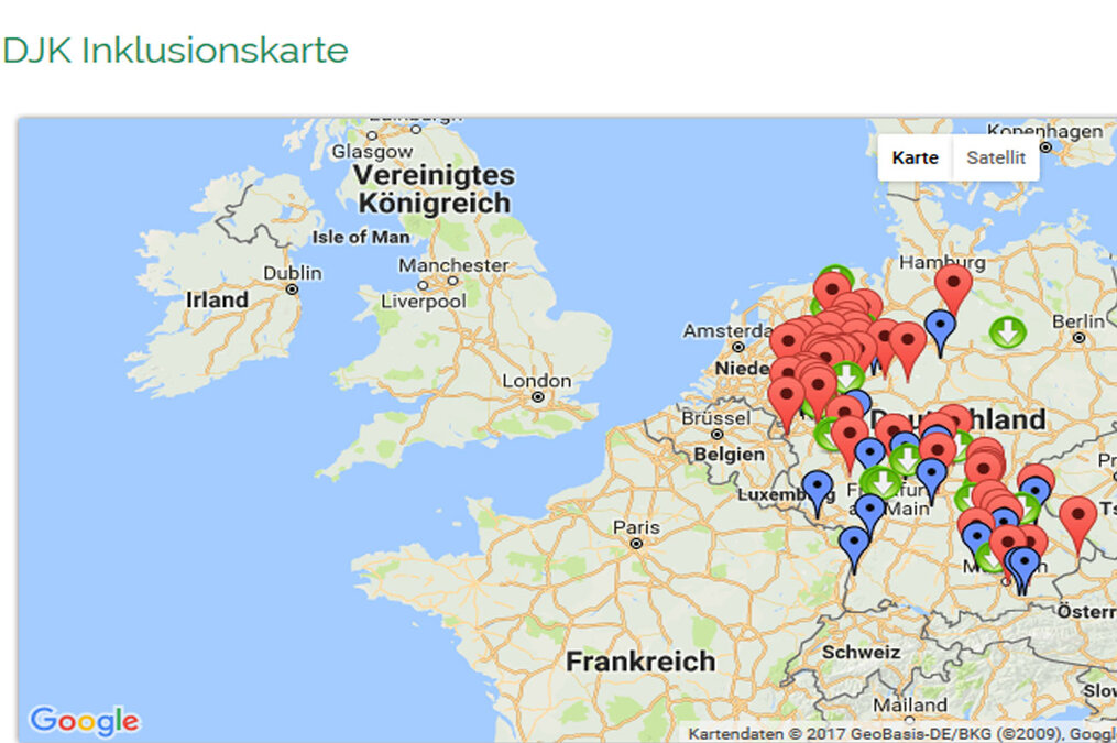 Auch der DJK-Sportverband verfügt bereits über eine eigene Inklusionslandkarte. Auf der Homepage des DJK-Sportverbandes finden Interessierte eine Karte, in der die inklusiven Angebote des DJK-Sportverbandes und der DJK Sportjugend aufgeführt sind. Diese Karte beinhaltet Adressen und die Verlinkungen zu den Internetauftritten der DJK-Vereine mit inklusiven Angeboten. Darunter finden sich auch Reha-Angebote. Die DJK-Inklusionskarte ist barrierefrei. „Wir möchten uns für die Beteiligung an der Erstellung der DJK Inklusionslandkarte ganz herzlich bedanken. Hier wird sichtbar, welch hervorragende Arbeit die Diözesan- und Landesverbände und vor allem auch unsere Vereine leisten - Danke - dafür,“ so DJK-Präsidentin Elsbeth Beha.