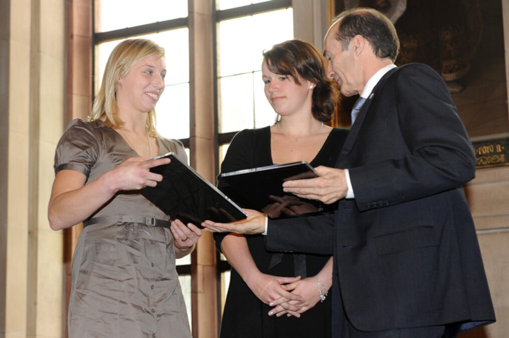 Dass die beiden Preisträgerinnen im vergangenen Jahr äußerst erfolgreich ihre Abiturprüfungen bestanden, hatte die Jury um den DOSB-Vizepräsidenten und Vorsitzenden des Arbeitskreises „Eliteschulen des Sports“ Eberhard Gienger ebenso überzeugt wie die sportlichen Leistungen der jungen Frauen. Gerade der Eliteschule des Sports entwachsen, ist beiden bereits der internationale Durchbruch bei den „Großen“ gelungen und der Sprung in die absolute Weltspitze geglückt. „Obwohl die grundsätzliche Idee ist, diese neue Auszeichnung jedes Jahr nur an eine Sportlerin oder an einen Sportler zu vergeben, haben wir gleich zum Start eine Ausnahme machen müssen. Denn beide Sportlerinnen haben es absolut verdient. Also haben wir uns gesagt: Zeichnen wir sie gemeinsam aus“, kommentierte Gienger die Entscheidung unter insgesamt 40 Kandidaten aus dem gesamten Bundesgebiet. Jede der derzeit insgesamt 40 „Eliteschulen des Sports“, als deren größter privater Hauptsponsor die Sparkassen-Finanzgruppe wirkt, hatte für die Wahl einen Kandidaten ins Rennen geschickt.