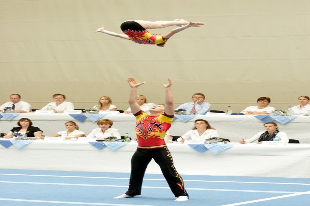 Ein Handstand auf den Händen des Kürpartners oder ein Salto, der in den ausgestreckten Armen der Mitturner gelandet wird – in der Sportakrobatik gibt es Momente, in denen man sich aufeinander verlassen muss. Anspruchsvolle Techniken und eine strenge Choreographie verlangen höchste Konzentration. Am besten also, man fängt so früh wie möglich mit dem gemeinsamen Training an. Und idealerweise sucht man sich dabei einen Verein wie den Dresdner Sportclub 1898, Gewinner des „Grünen Bandes für vorbildliche Talentförderung im Verein“. Denn bei den Sachsen wird nicht nur von jungen Jahren an nach leistungssportlichen Kriterien trainiert. Hier legt man zudem größten Wert auf ein intaktes Vereinsleben und echtes Miteinander.