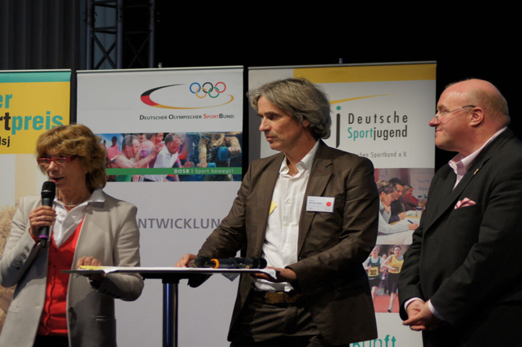 Rüdiger Heim zeigte in seinem Hauptvortrag unter dem Titel „Kinder- und Jugendsport in einer sich veränderten Welt“, dass Veränderungen im Bildungssystem, im Freizeitverhalten sowie der demografische Wandel deutliche Auswirkungen auf die Organisation des Sports in Deutschland haben werden. Einen allgemeinen negativen Trend wollte er aber nicht ausmachen: „Einige sehen einen Tsunami auf uns zurollen. Das würde ich so aber nicht sagen.“ Vielmehr bemühte er das Bild mehrerer wellenschlagender Ereignisse, deren Wellen zwar aufeinander einwirkten, sich aber auch gegenseitig aufheben würden. Auch die allgemeine Befürchtung, die Entwicklung hin zur Ganztagsschule wirke sich negativ auf das Sporttreiben der Heranwachsenden aus, relativierte er: „Es gibt zwar einen nicht zu verneinenden Einfluss, man sollte ihn aber auch nicht dramatisieren.“