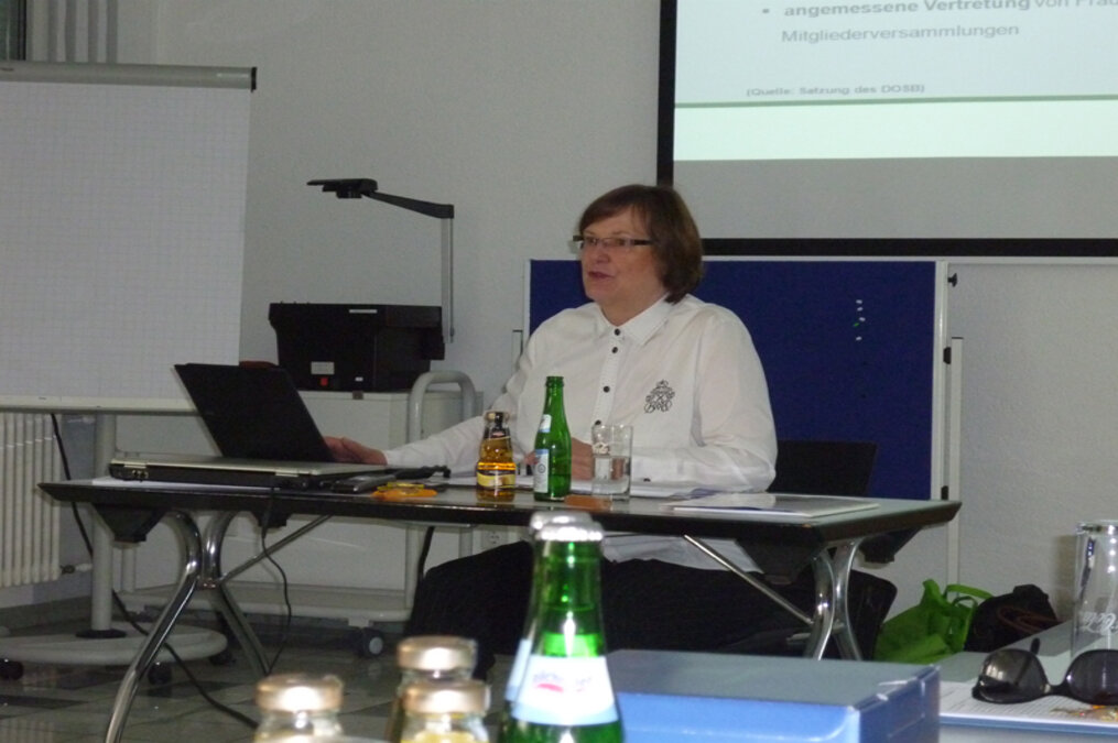 Ilse Ridder-Melchers präsentierte die Arbeitsschwerpunkte des DOSB bis 2014 im Bereich Frauen und Gleichstellung. Auch der Dachverband setzte nach wie vor einen Schwerpunkt auf "Frauen an die Spitze". Mit den Erkenntnissen und Erfahrungen der Aktionen "Frauen gewinnen" werden verschiedene Projekte weiterentwickelt und miteinander verknüpft, um einen höheren Mehrwert zu generieren. Um Frauen für Führungsaufgaben zu motivieren, werden die Führungstalente-Camps fortgeführt. Der Verbandswettbewerb wird neu aufgelegt, um über Vorbilder zu werben. Außerdem werden weitere Mitgliedsorganisationen im Rahmen einer Organisationsberatung von Expertinnen und Experten begleitet. Darüber hinaus wird der DOSB unter Mitwirkung von Athletensprecher, dsj und Leistungssport-Abteilung ein Mentoring-Projekt initiieren, das sich gezielt an junge Frauen aus dem Spitzensport richtet, die im Anschluss an ihre sportliche auch eine ehrenamtliche Karriere anstreben.