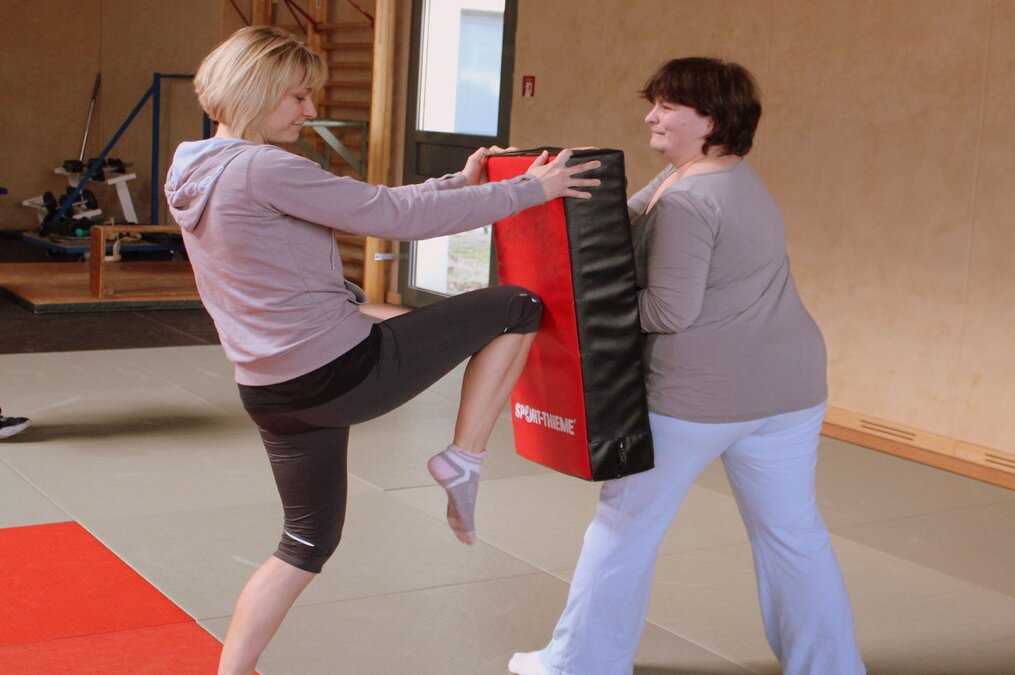 Der Deutsche Olympische Sportbund (DOSB) hat mit seiner Aktion „Gewalt gegen Frauen – nicht mit uns!“ gemeinsam mit Kampfsportverbänden und vielen Aktionspartnerinnen ein Format geschaffen, um mit ganzheitlich konzipierten Selbstbehauptungsangeboten Selbstsicherheit und Selbstwertgefühl bei Mädchen und Frauen zu stärken. Weil sich Körpersprache und Auftreten verändern und sie andererseits eskalierende Situationen frühzeitiger erkennen, geraten sie nicht so leicht in eine Opferrolle. In Kooperationen aus Kampfsportvereinen und Aktionspartnerinnen sollen mit begleitenden Maßnahmen der Öffentlichkeitsarbeit zudem die Präventions- und Hilfeangebote zum Schutz vor Gewalt besser bekannt und vernetzt werden.