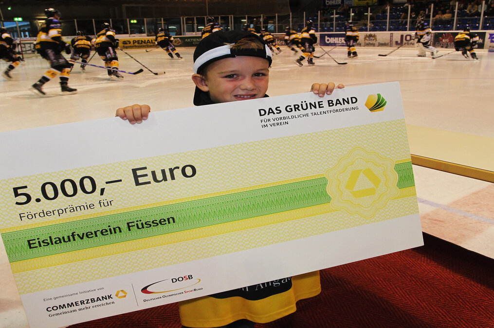 Einen Volltreffer landete der EV Füssen schon vor Beginn des Freundschaftsspiels gegen den HC Thurgau. Für seine herausragende Nachwuchsarbeit erhielt der Eislaufverein das „Grüne Band für vorbildliche Talentförderung“. Die Auszeichnung wird seit nunmehr 24 Jahren von Deutschem Olympischen Sportbund (DOSB) und Commerzbank AG vergeben.