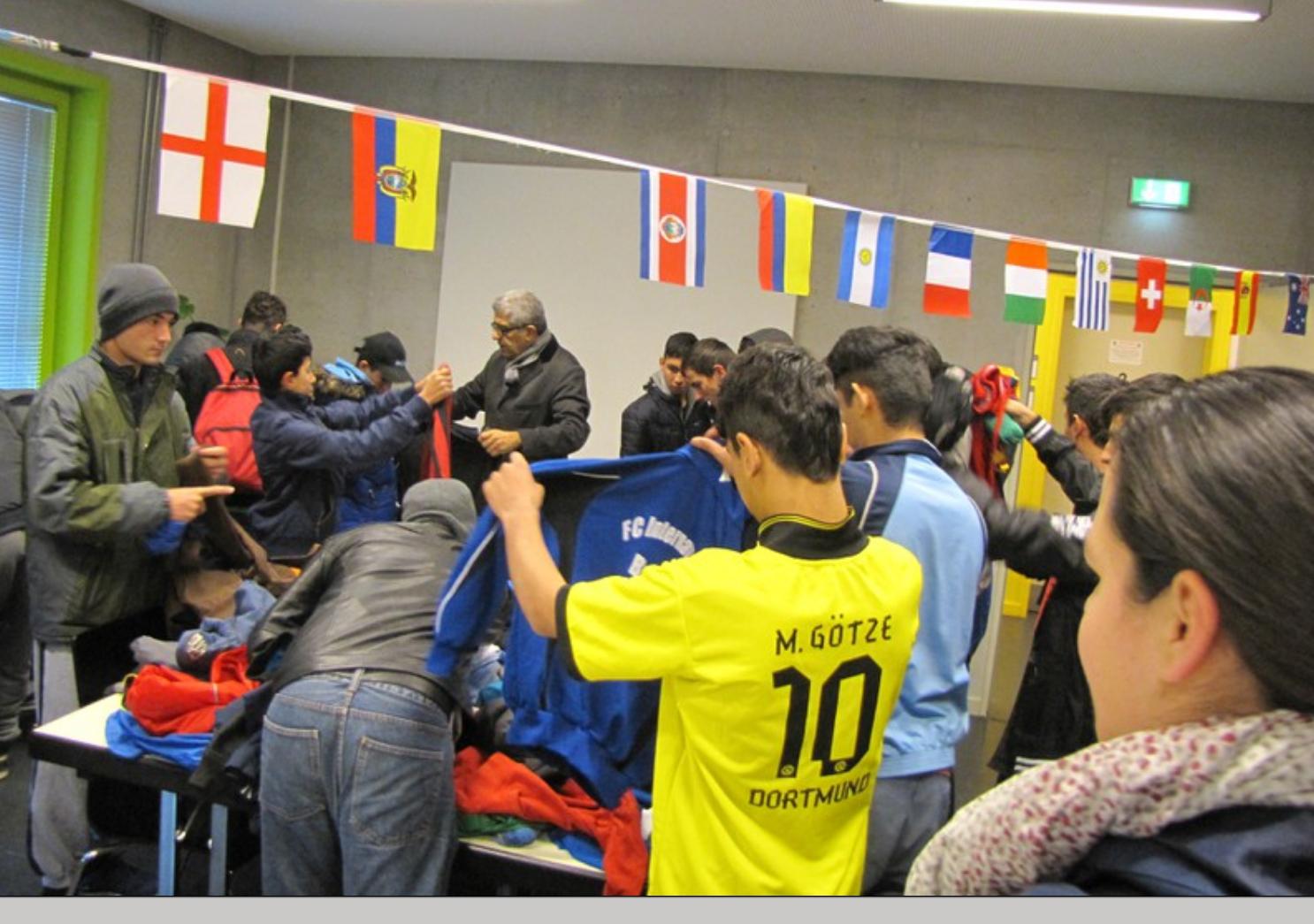 Langfristig sucht man nach einer Finanzierung, um das Projekt auf sichere Beine stellen zu können. Denn beide Seiten waren sich einig, dass vor allem Nachhaltigkeit und Kontinuität der Schlüssel für eine erfolgreiche Integration der Jugendlichen sind. Die Jungs hatten sichtlich Spaß und freuten sich nach zwei Stunden Fußball über den kulinarischen Abschluss, den der FC Internationale bereitstellte. Ein großer Dank gilt an die Mitglieder des Vereins, die schnell und unkompliziert Sportkleidung und vor allem Fußballschuhe zur Verfügung stellten. Besonderes Lob gilt hierbei Ali Günseven von der Firma Tornadosport, der zwei große Kartons mit Schuhen und Trikots brachte. Die Jugendlichen haben sich über die Spenden sehr gefreut, wobei auffiel, dass vor allem Shirts des FC Barcelona und des FC Internationale hoch im Kurs standen.
