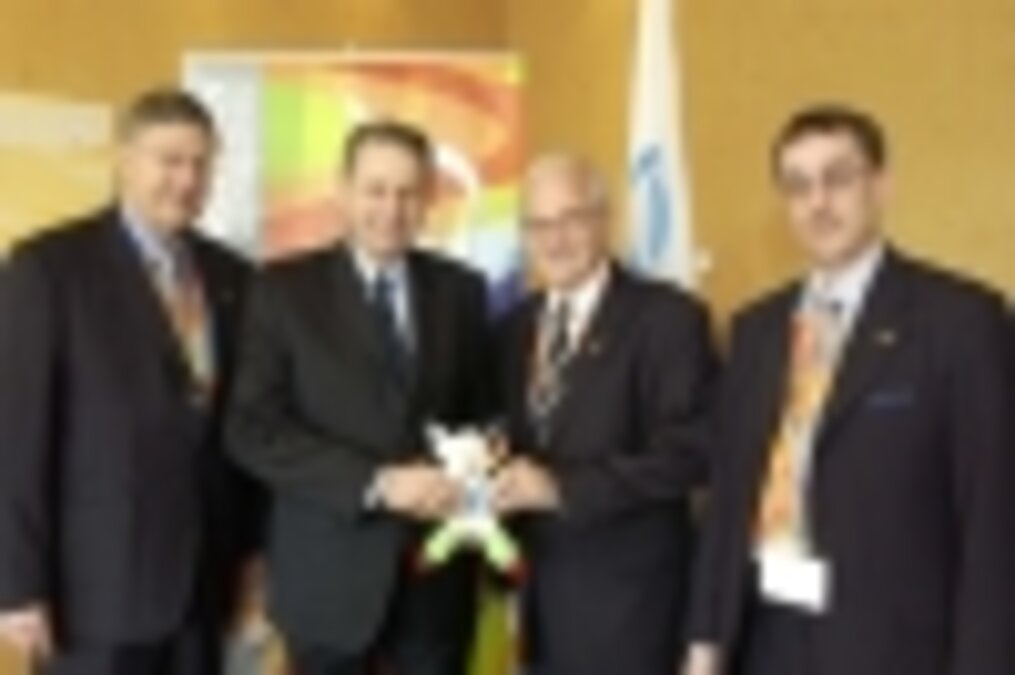 Der Chef des Internationalen Olympischen Komitees empfing die dreiköpfige World Games-Delegation – vertreten durch Ron Froehlich, Heiner Henze und Peter Orzol (beide World Games 2005 GmbH) – zu einem Fototermin in seinem Büro und nahm aus den Händen des IWGA-Präsidenten Ron Froehlich das Maskottchen der World Games 2005, Allwin, entgegen. Dabei meinte Jacques Rogge: „Wenige Wochen vor dem Start der World Games 2005 freue ich