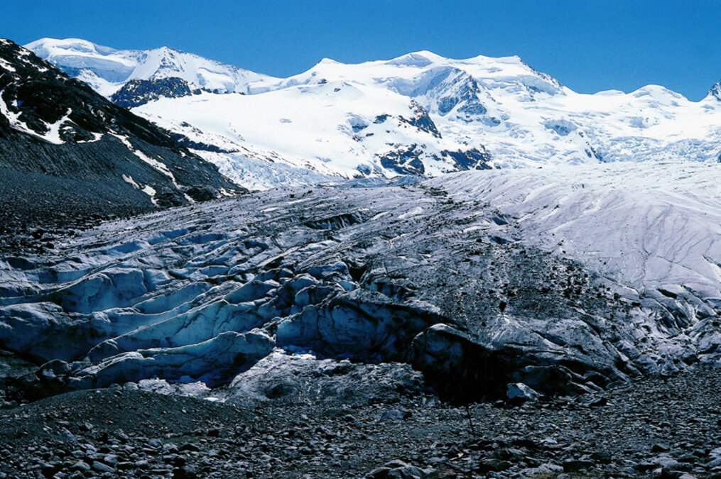 Ein Vortrag des Gletscherwissenschaftlers und Leiter des Europäischen Tourismus Institutes in Samedan, Felix Keller, zeigte den Transalpinisten in direkter Nachbarschaft vom Morteratschgletscher vor Ort die ganze Dimension des Klimawandels.