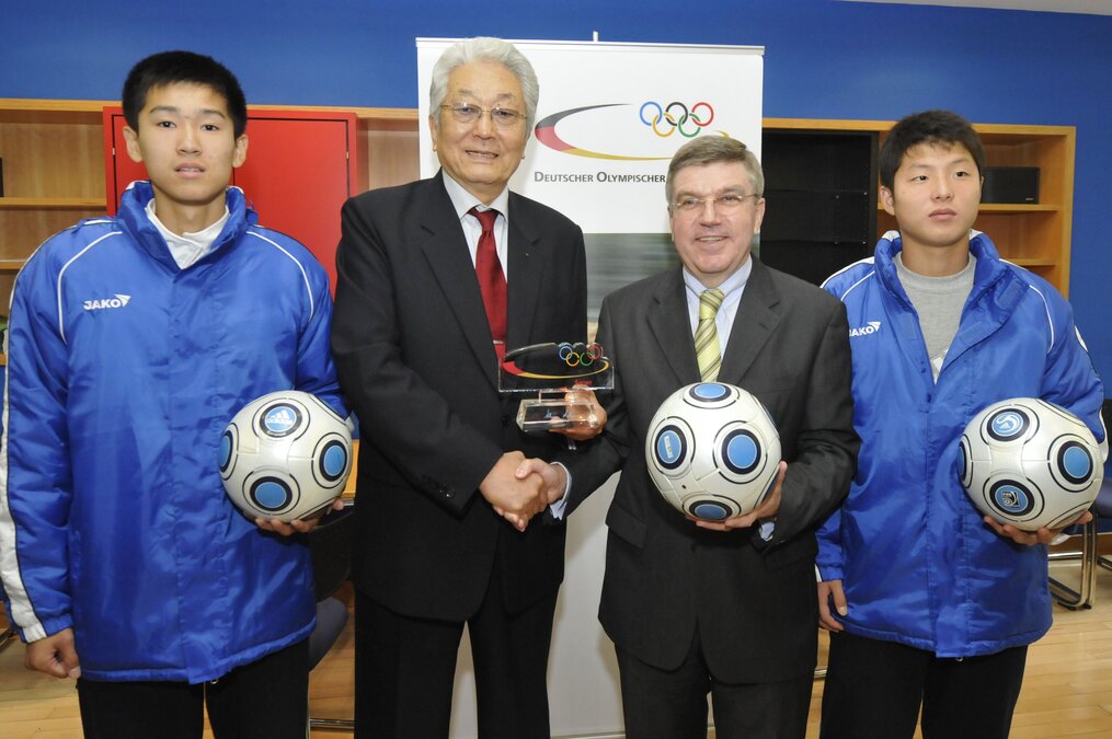 DOSB-Präsident Thomas Bach begrüsste neben den 17 Spielern des Jahrgangs 1994 und ihren fünf Trainern und Betreuern auch das IOC-Mitglied für Nordkorea, Prof. Ung Chang. Chang und Bach hatten den ersten Besuch einer Mannschaft aus Nordkorea in Deutschland vor längerer Zeit angeregt. Thomas Bach sagte: „Mit dem Deutschland-Besuch der nordkoreanischen Fußballer feiern wir eine sportpolitische Premiere. Wir freuen uns, dass beide Seiten mit dem Besuch zur internationalen Verständigung beitragen. Es ist gut zu sehen, wie diese Initiative des DOSB Brücken für junge Sportler baut.“ Prof. Ung Chang dankte den deutschen Gastgebern und sagte: „Der Besuch ist ein Erfolg, das Training war exzellent und die Jungen sind glücklich. Es war wichtig für sie zu erfahren, wie hoch das technische und athletische Niveau im europäischen Jugendfußball ist.“ Nordkoreas Herren hatten sich im September erstmals seit 1966 wieder für eine Fußballweltmeisterschaft qualifiziert.