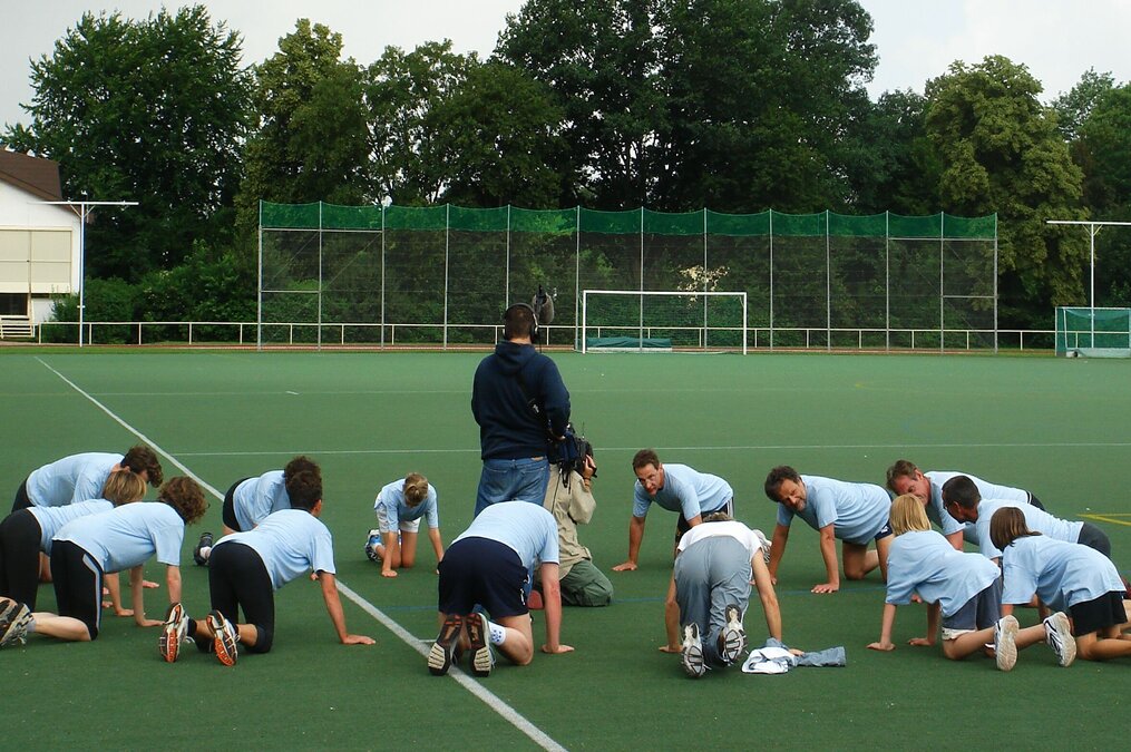 Zu Beginn gab es ein intensives Aufwärmprogramm mit Laufen und verschiedenen Gymnastikübungen am Boden und im Stand. Später wurden dann einige leichtathletische Disziplinen ausprobiert, und wer wollte, konnte sich auch gleich die entsprechenden Prüfungen abnehmen lassen.
