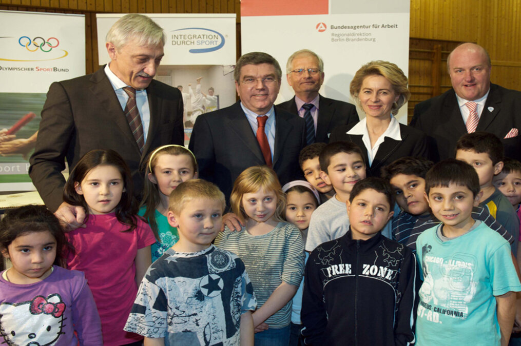 Der Deutsche Olympische Sportbund (DOSB) und die Bundesagentur für Arbeit bündeln ihre Kräfte, um Kindern aus bedürftigen Familien zu helfen. Für das ab 2011 kommende Bildungspaket unterzeichneten DOSB-Präsident Thomas Bach und Heinrich Alt, Vorstand Grundsicherung der Bundesagentur für Arbeit, im Beisein der Bundesministerin für Arbeit und Soziales, Ursula von der Leyen, eine entsprechende Kooperationsvereinbarung. Ziel ist es, den knapp zwei Millionen Kindern und Jugendlichen aus den sogenannten Hartz-IV-Familien einen unbürokratischen Zugang zu Sportvereinen zu ermöglichen.
