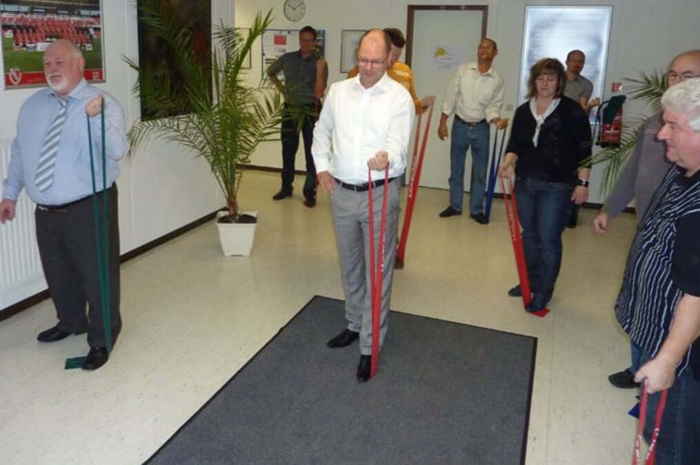 Ob im Sportdress oder im Anzug − die Mitarbeiterinnen und Mitarbeiter eines Energieunternehmens in Weißwasser unterziehen sich seit 2009 einem schweißtreibenden Sportprogramm. Die Initiative des Kraftwerks Boxberg nennt sich „Aktive Minipause“ und wird von einem Diplom-Sportlehrer organisiert, der bereits seit mehreren Jahren das Gesundheitsprogramm des Unternehmens fachlich begleitet. Mindestens einmal pro Woche bringt er die zwölf Frauen und Männer mit Kniebeugen oder Hampelmännern ins Schwitzen. Dafür wurden eigens „Minipausen“ während der Arbeitszeit geschaffen. Ziel des Projekts ist es, den Krankenstand zu verringern und einen Beitrag zur Gesundheit der meist sitzenden Mitarbeiterinnen und Mitarbeiter zu leisten.