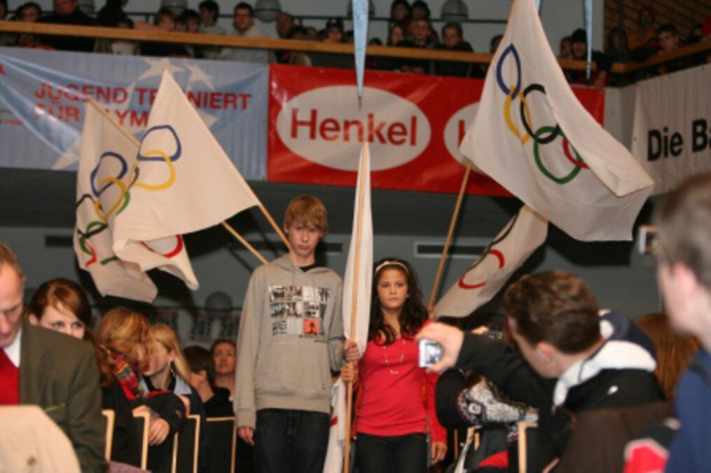 Besonders erfolgreich aber erfüllte die DOA ihren Bildungs-Auftrag im Sinne olympischer Erziehung im Rahmen einer neunzigminütigen Showveranstaltung unter dem eingeführten Titel „DOSB-Action-Time“. Im „ausverkauften“ Schonacher „Haus des Sports“ präsentierte das DOA-Team einen bunten Abend mit Vorführungen von Grund- und Realschülern, Musik- und Zirkuseinlagen sowie Darbietungen hochkarätiger Nachwuchsathletinnen und -athleten aus den Bereichen Turnen und Rhythmischer Sportgymnastik. Zu einem bleibenden Erlebnis für das meist jugendliche Publikum wurde die Veranstaltung auch durch den Auftritt der sportlichen Prominenz.
