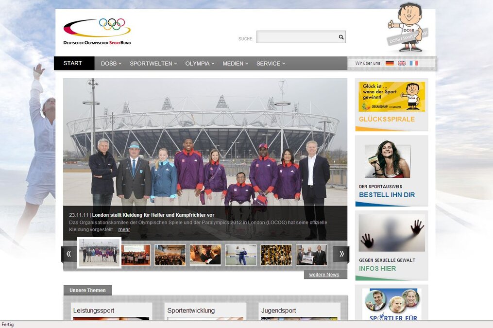 Ein Klick auf www.dosb.de führt auf die neu gestalteten Internetseiten des DOSB. In frischem Design und übersichtlich präsentiert sich das Portal.
