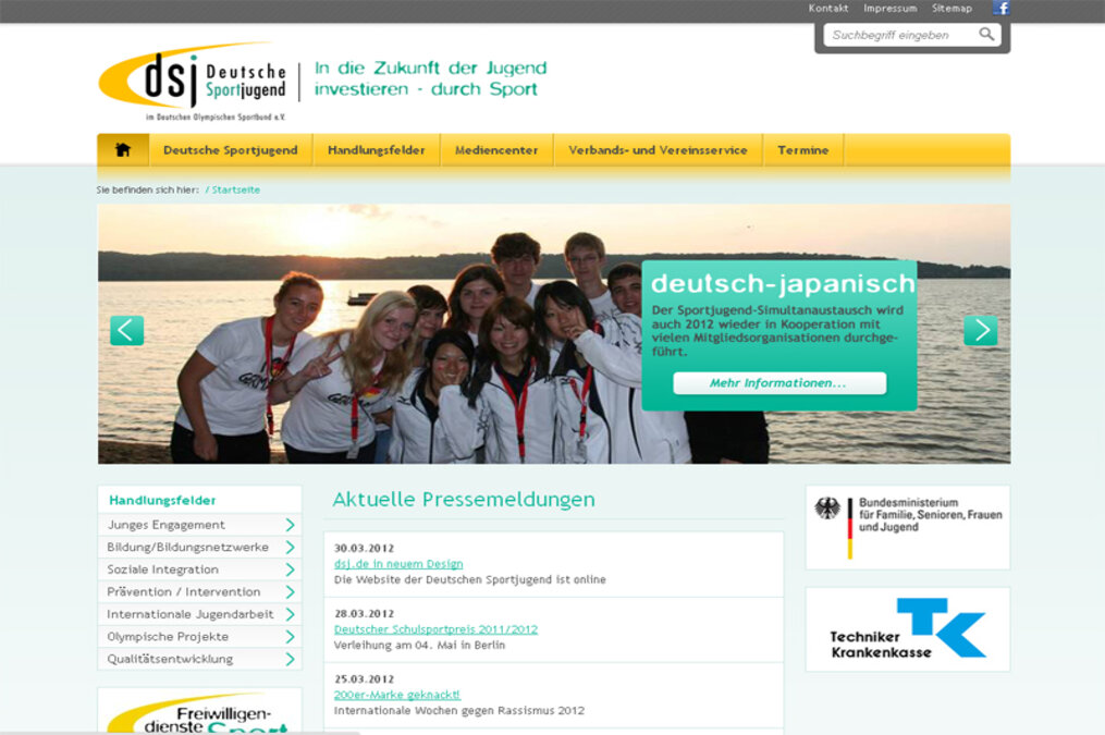 Neu strukturiert und gestaltet zeigt sich die Website www.dsj.de seit dem 30. März 2012. Die Hauptnavigation orientiert sich dabei an den aktuellen Handlungsfeldern der dsj.